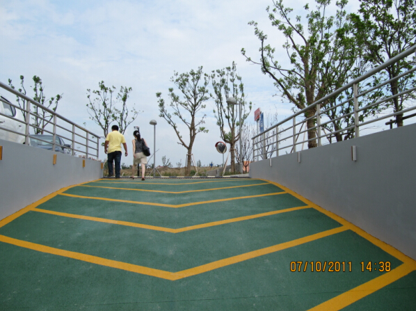 無震動防滑坡道是使用在車庫進出口位置的防滑地面,防滑坡道一般分為進出口,不同方向設置不同的箭頭,以此來區分進出口,方向箭頭是由兩種顏色搭配而成,所以一般施工無震動防滑坡道都選擇兩種顏色的材料。
