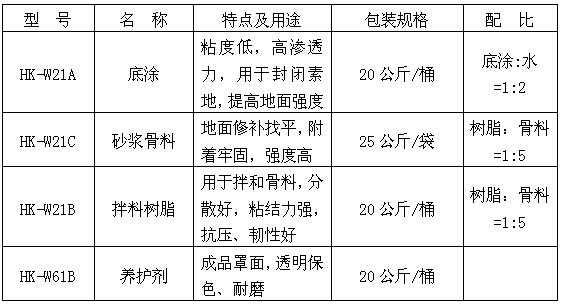 3.5施工方法:將鴻坤水性樹脂、骨料按配比充分攪拌,均勻攤鋪在工作面,根據地面及用量情況分1-2遍施工,保養2天時間。