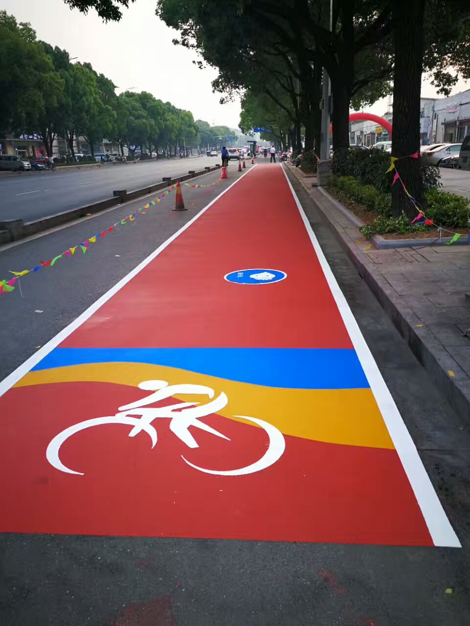 自行車道材料由鴻坤彩色防滑路面材料施工而成,施工簡單方便,干燥時間短,表面防滑效果明顯,顏色可以根據現場設計來定,綠道樹脂的粘接力好,可以和多種基材結合。