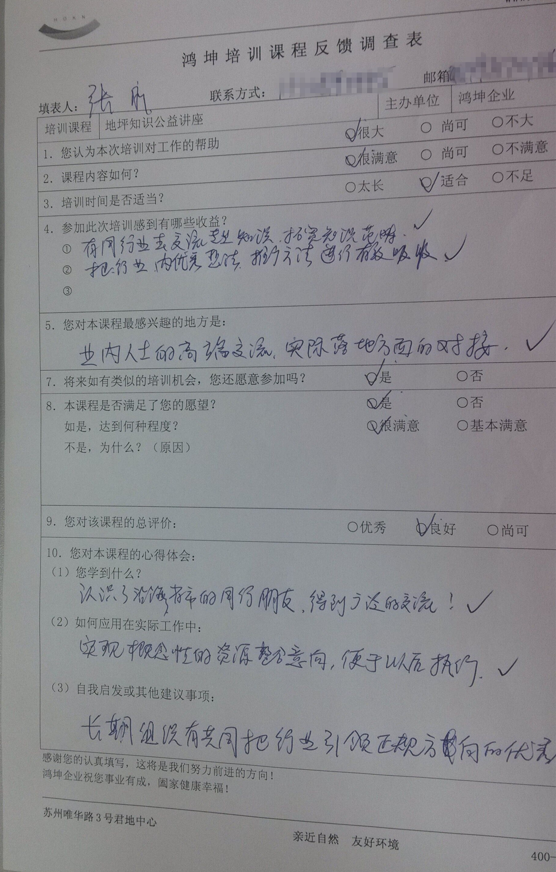 鴻坤企業:參加此次培訓感到有哪些收益?